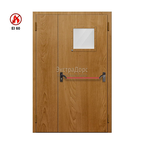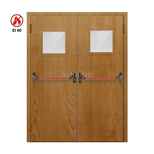 Противопожарная дверь EI 60 ДОП-02-EI60 ДП07 полуторная остекленная с МДФ с антипаникой