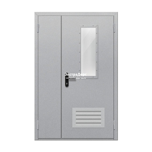 Противопожарная дверь EI 60 ДО-02-EI-60 полуторная остеклённая с прямоугольным окном