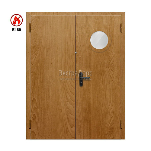 Противопожарная дверь EI 60 ДО-02-EI60 ДП09 полуторная остекленная с МДФ с круглым окном