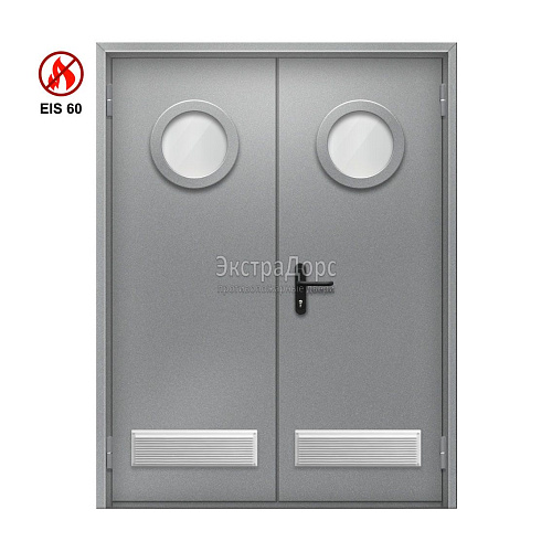 Двупольная огнеупорная дверь EI 60 ДГ-02-EI-60 двупольная глухая с решётками