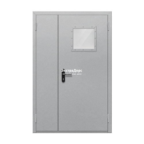 Противопожарная дверь EI 60 ДО-02-EI-60 полуторная остеклённая с квадратным окном