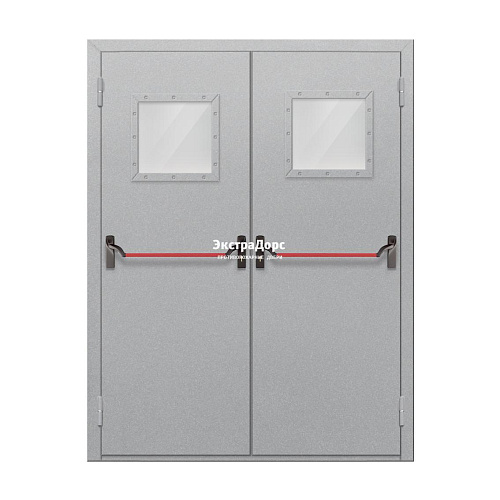 Двупольная огнестойкая дверь EI 60 ДО-02-EI-60 двупольная остеклённая с прямоугольным стеклом