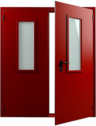Герметичная дверь противопожарная с порошковым напылением и стеклом