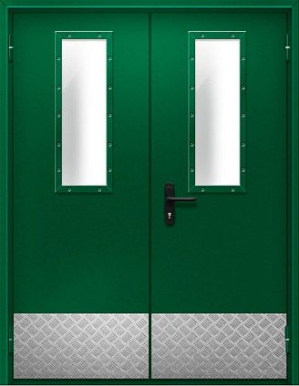 Герметичная дверь огнестойкая зеленая со стеклом двупольная