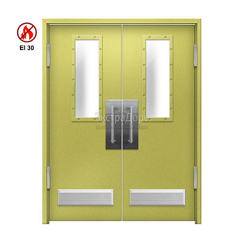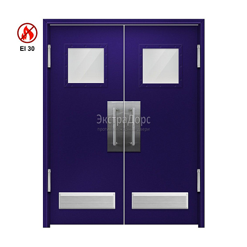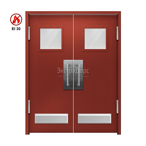 Двупольная огнеупорная утепленная маятниковая дверь с решетками остекленная EIW 30 ДПМ-02-EIW-30 ДП80