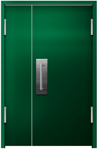 Металлическая утепленная противопожарная дверь EI 90 ДМП-01-60 двупольная зеленая металлическая входная