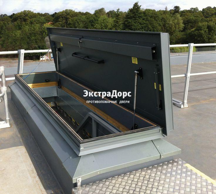 Черный противопожарный люк на кровлю с прозрачной крышкой