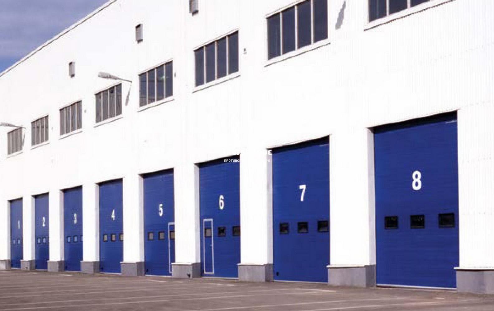 Синие огнеупорные промышленные ворота с окнами в Жуковском