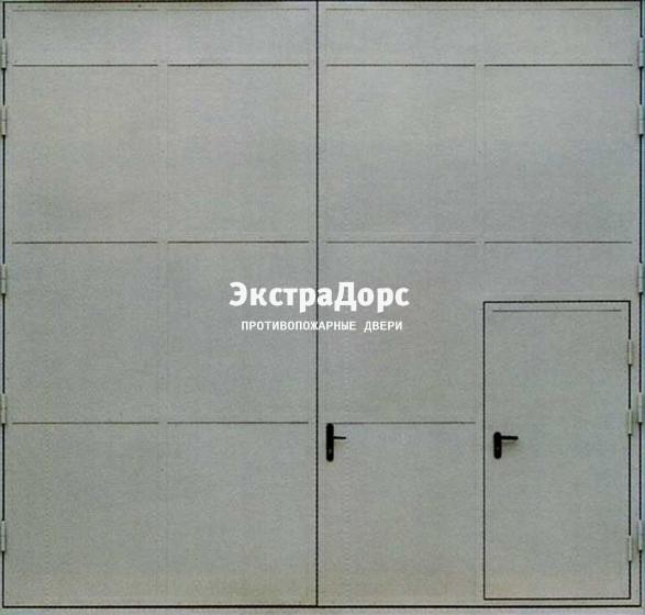 Противопожарные распашные серые ворота с калиткой в Жуковском