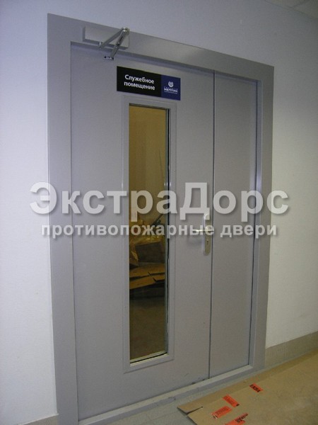 Двухстворчатая противопожарная дверь с прямоугольным стеклом в Жуковском
