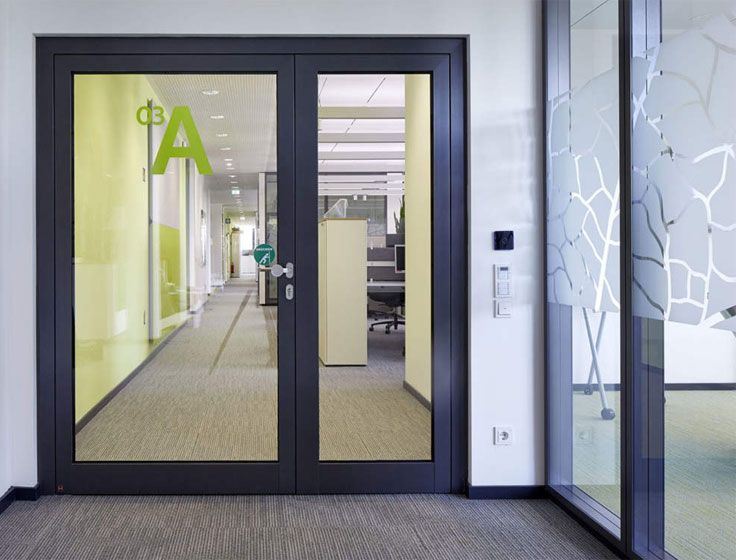Противопожарная алюминиевая дверь со стеклом для офиса в Жуковском