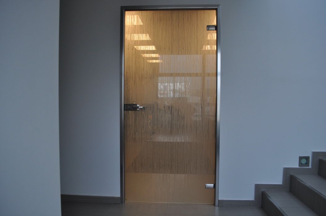 Противопожарная безрамная дверь со стеклом в БЦ в Жуковском