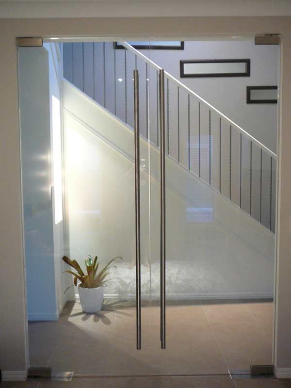 Противопожарная безрамная дверь со стеклом в частный дом в Жуковском